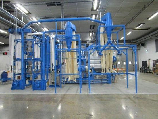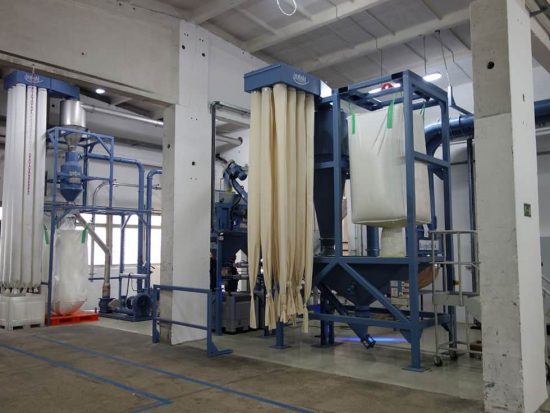Die Anlage wurde von HERBOLD MECKESHEIM geliefert und kann bis zu 8.000 Jahrestonnen an Folien, gebrauchten Bigbags und ähnlichen Abfällen verarbeiten. Die in Ballen anfallenden Abfälle werden vorsortiert, geshreddert und in einer Vorwaschanlage von Störstoffen befreit. Dort wird auch eine erste Wäsche vorgenommen.