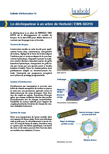 Le déchiqueteur à un arbre de HERBOLD / EWS 60/210 est le développement du modèle de broyeur de la série EWS pour débits élevés et il convient aux broyages à sec et humide.